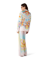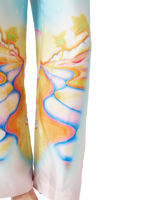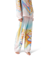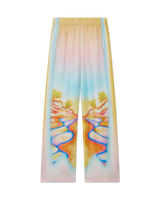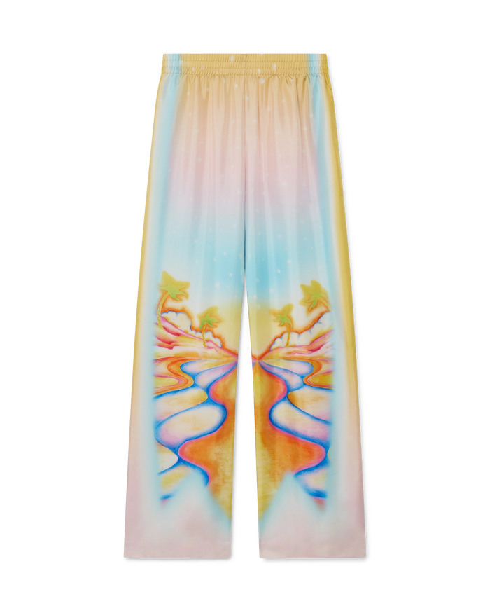 The Psychedelic Nirvana silk trousers are an all-over printed design crafted from silk twill fabric featuring artwork inspired by '70s airbrushed surfboards in California using pastel colours, which give the print an almost dream-like, idealistic feeling. Finished with an elasticated waistband, drawstring fastening, in-seam side pockets, and a back patch pocket.