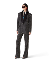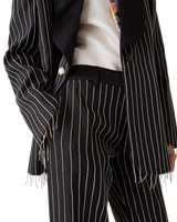 The crystal embellished tailored trousers are a slim design crafted from silk tailoring fabric and crystals, and feature a cotton blend lining. Completed with a zip closure, side pockets, and back welt pockets.